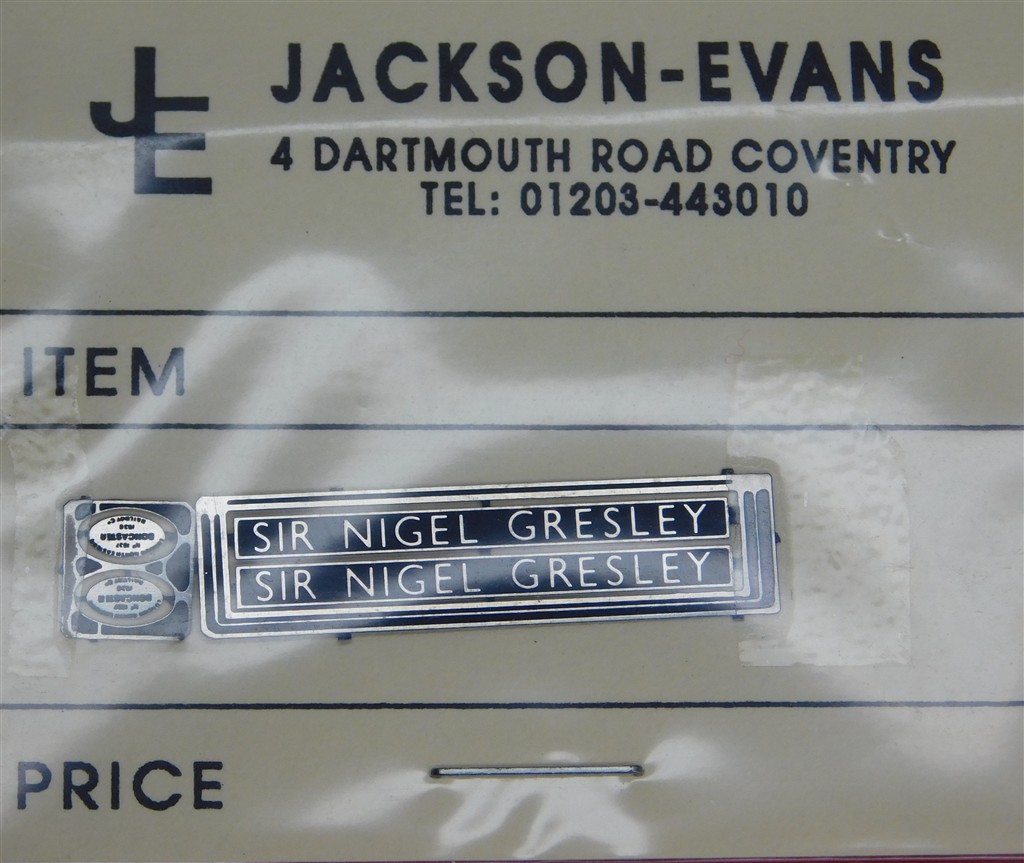 Spares: Jackson-Evans Sir Nigel Gresley nameplates and worksplates