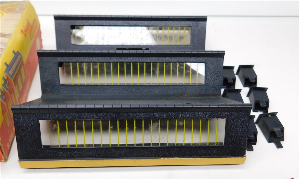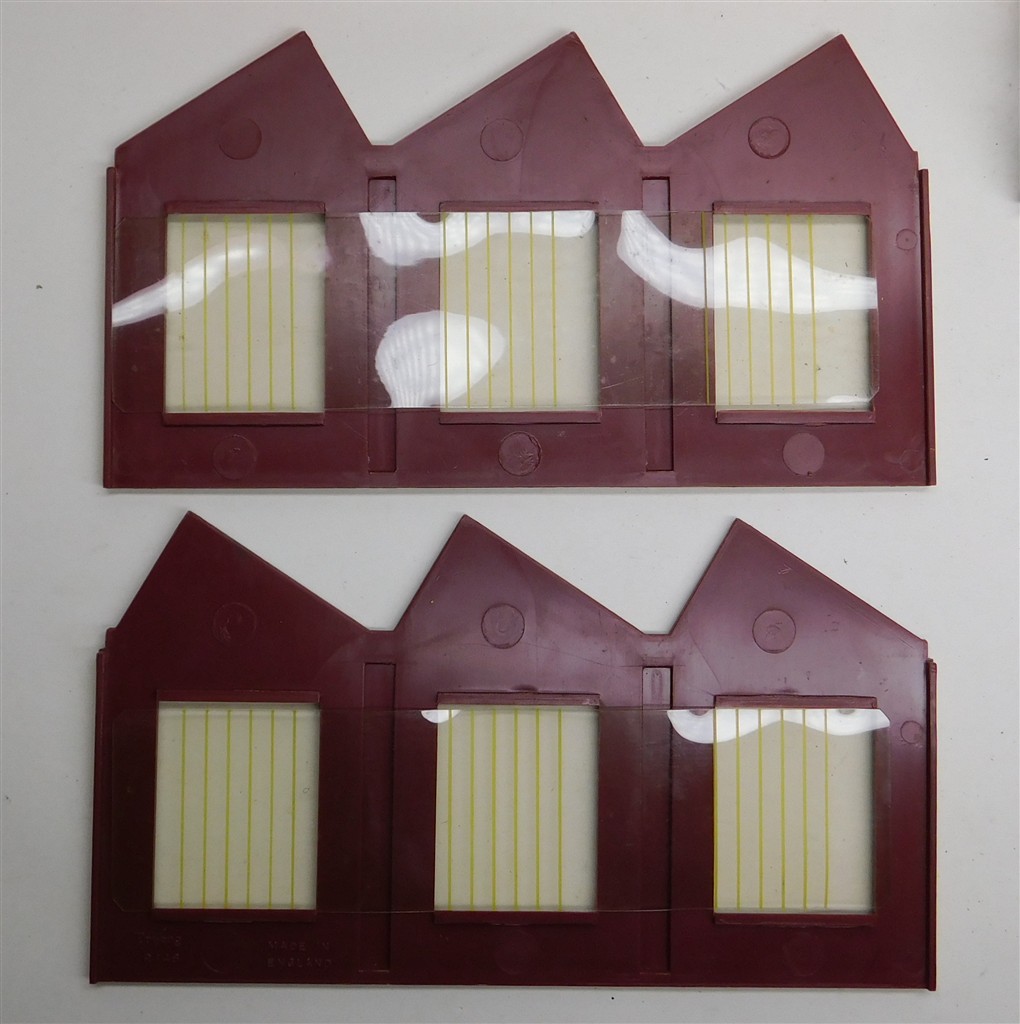 A Tri-ang R146 Modern Loco Shed, complete but some glazing has shrunk and some of the smoke vents have broken/missing lugs, one smoke vent has a damaged but repairable top, in fair condition, supplied in the attractive original box