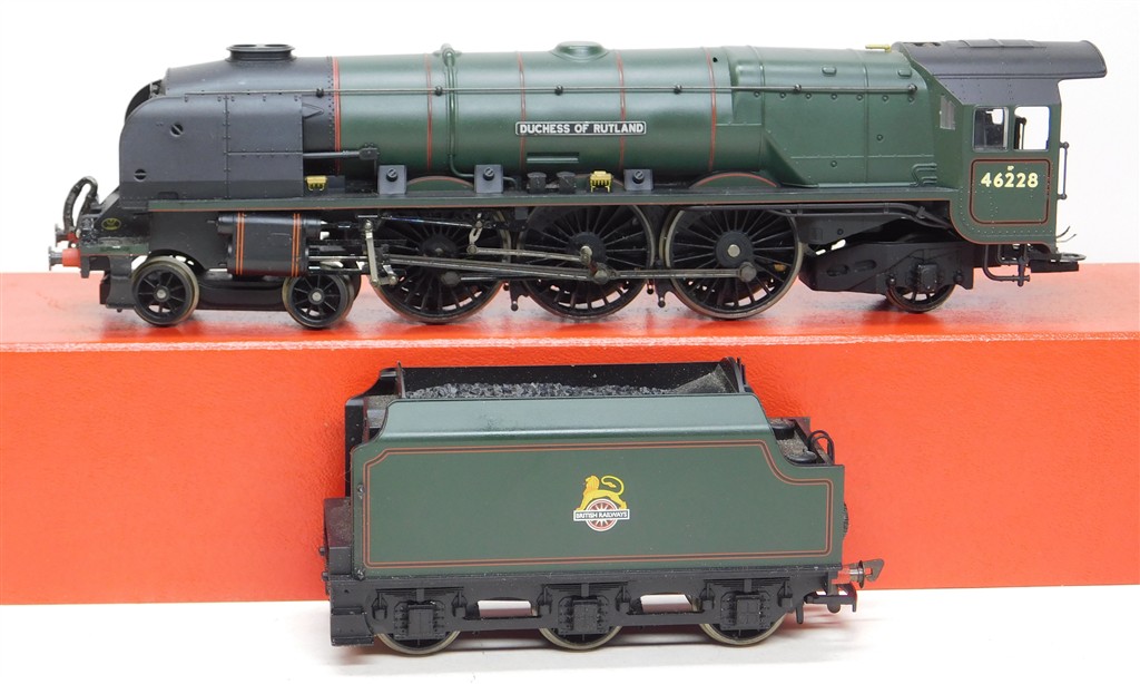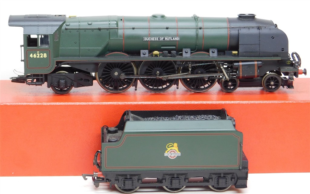 00 Steam Locos: Hornby loco drive BR Duchess of Rutland steam loco number 46228 with added front end details, good runner