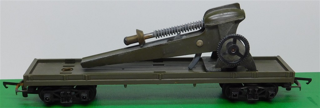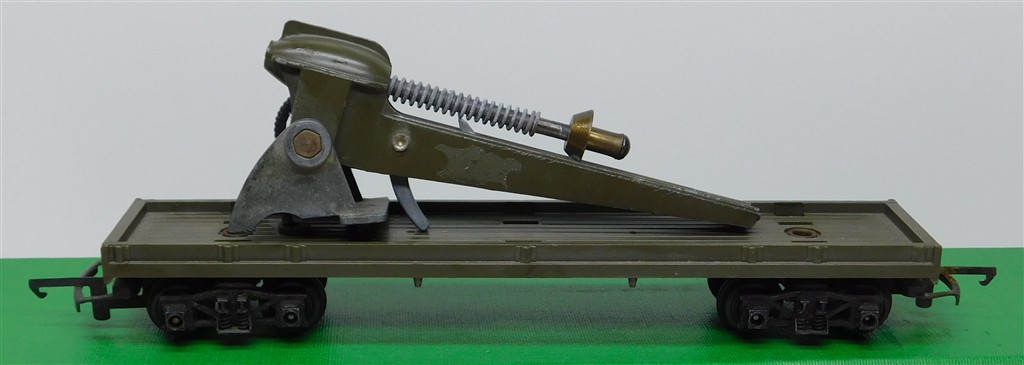 A Tri-ang Battlespace rocket launcher wagon, incomplete for spares/repair, in poor condition, khaki green, no original box, metal bogies with deep flanged wheels