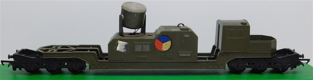 Tri-ang Transcontinental: Tri-ang Battlespace searchlight car, khaki, unnumbered