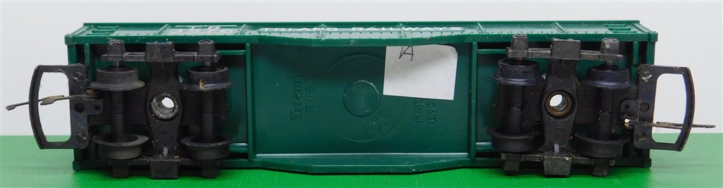 Tri-ang Transcontinental: Tri-ang TC TR green gondola car TR 3576, large letters, metal bogies (A)