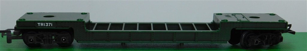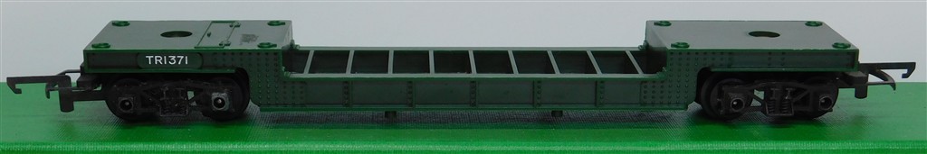 Tri-ang Transcontinental: Tri-ang TC TR green depressed center car TR1371, metal bogies