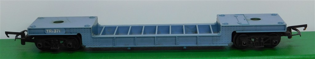 Tri-ang Transcontinental: Tri-ang TC TR pale blue depressed center car TR1371, metal bogies