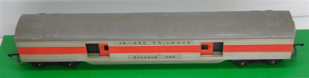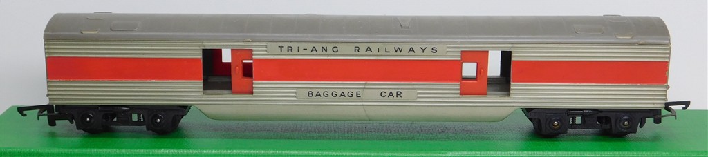 Tri-ang Transcontinental: Tri-ang TC TR 1st series silver and red baggage car 10724 with plastic bogies