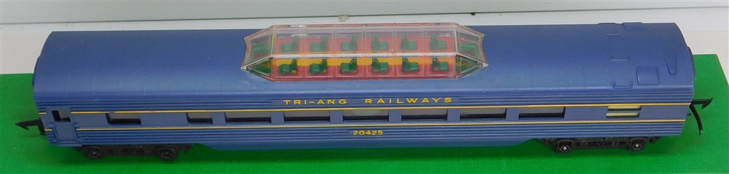 Tri-ang Transcontinental: Tri-ang TC TR 1st series blue observation car 20425 with metal bogies with MkII couplings, blue roof