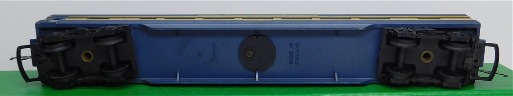 A Tri-ang TC TR 1st series blue observation car 20425 with plastic bogies with deep flanged wheels, grey roof, rust spots on the couplings otherwise in good condition but would benefit from a further clean, no original box