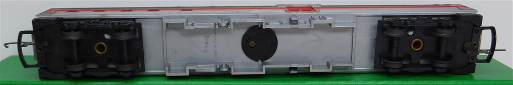Tri-ang Transcontinental: Tri-ang TC Transcontinental 2nd series silver and red baggage car