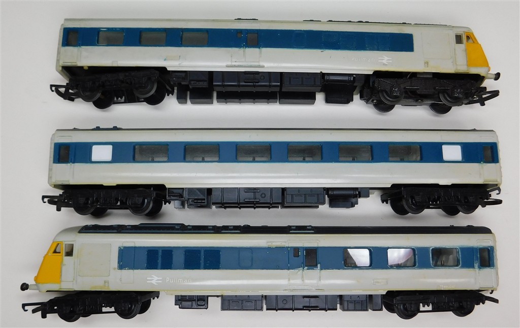 An early 1970s production Tri-ang Hornby BR Blue Pullman, good runner, grey and blue livery, in good used condition, needs a good clean, no original box. Please note this loco needs a controller capable of delivering at least 600mA to run well, and doesn't like new Hornby or Peco points.