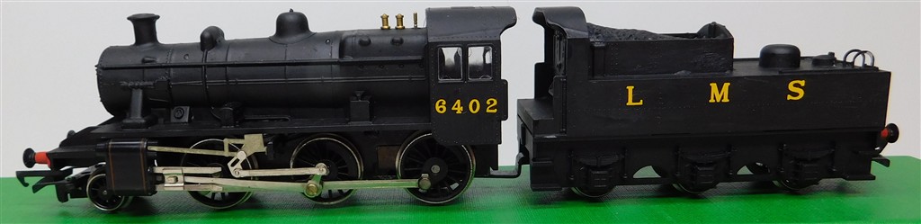 A mid 1970s production Hornby repainted LMS Ivatt 2MT 2-6-0 steam loco 6402, good runner, supplied in the tatty original box. Please note this loco needs a controller capable of delivering at least 600mA to run well.