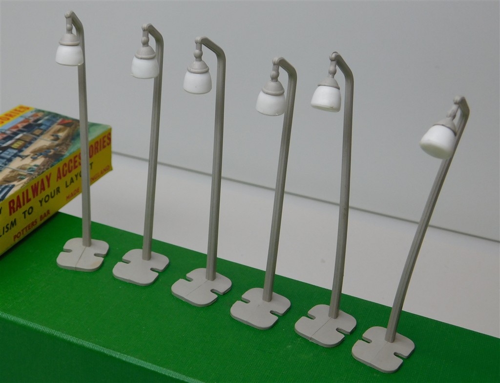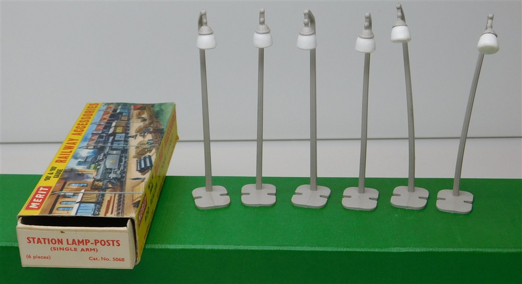 Merit 5068 Station Lamp-Posts (Single Arm) (6 pieces), slight bending of the post otherwise in very good condition, supplied in the original box