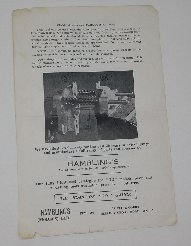 A Hamblings Wheel Press Tool instruction sheet, in fair condition