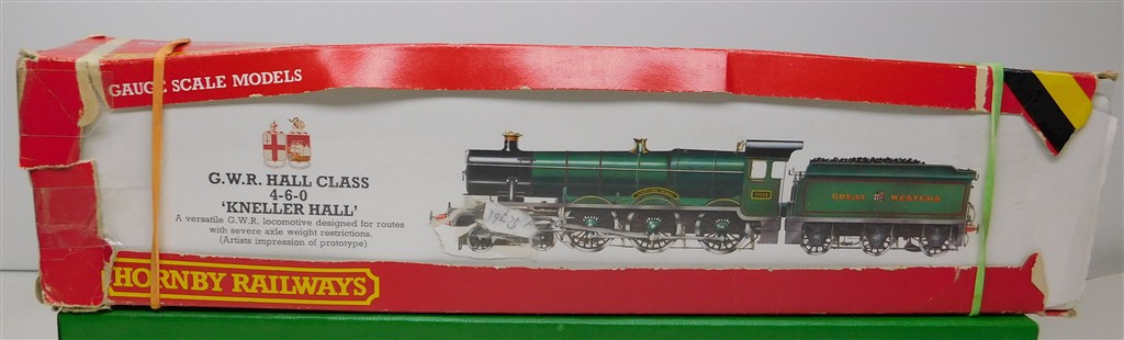 A mid 1970s production Hornby repainted and lightly detailed BR green livery 4-6-0 steam loco Kneller Hall, good runner, in good condition, supplied in the tatty original box. Please note this loco needs a controller capable of delivering at least 600mA to run well, and doesn't like new Hornby or Peco points due to the deep flanged wheels