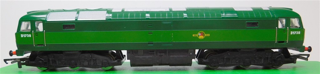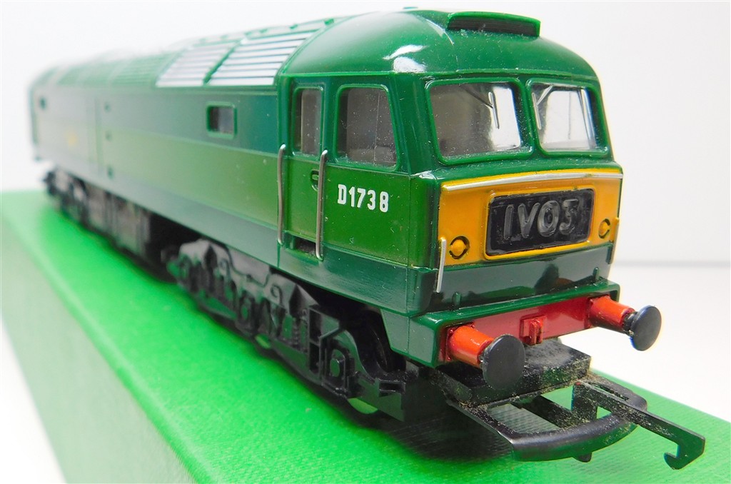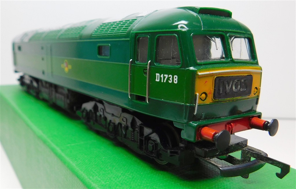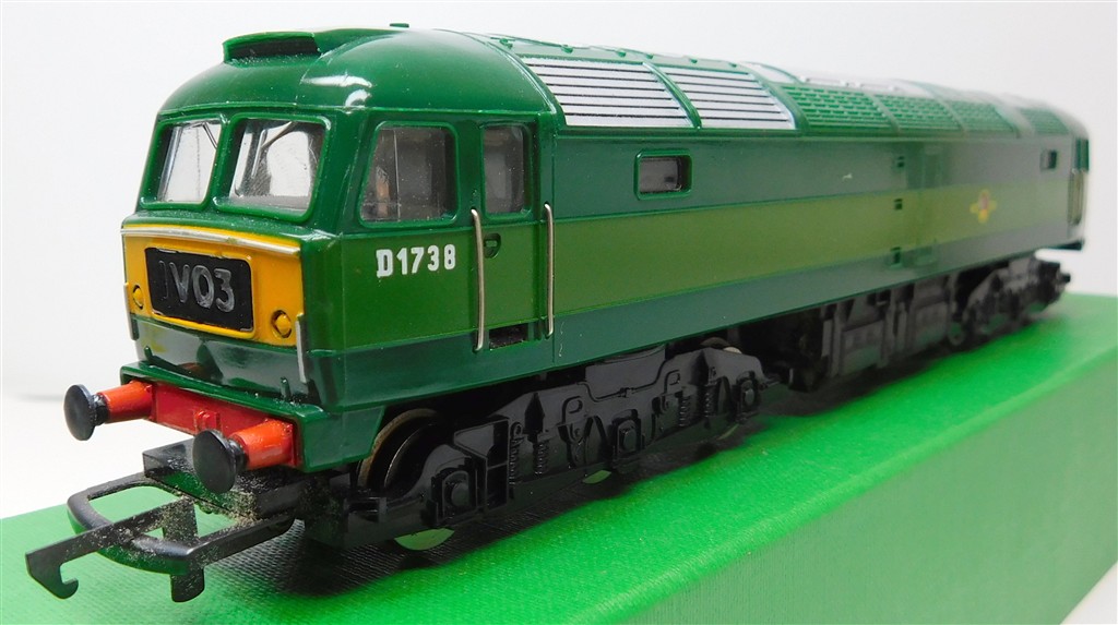 A mid 1970s production Hornby BR two-tone green class 47 number D1738 with directional 1V03 headcodes, good runner, in good condition, no original box.