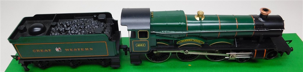 A mid 1970s production Hornby GWR green livery Hall class 4-6-0 steam loco 4983 Albert Hall, good runner, in good condition, no original box. Please note this loco needs a controller capable of delivering at least 600mA to run well, and doesn't like new Hornby or Peco points due to the deep flanged wheels