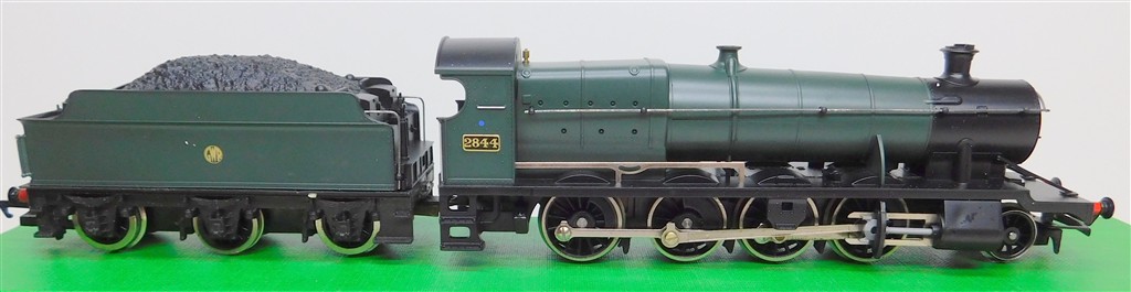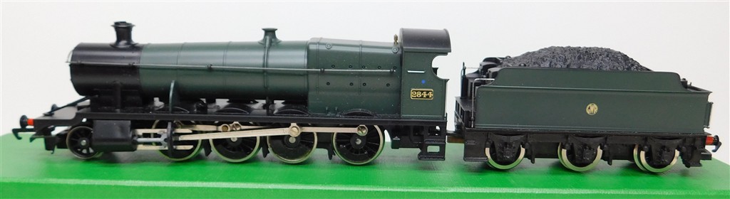 00 Steam Locos: Hornby R2053 tender drive GWR 28XX 2-8-0 steam loco number 2844, unlined GWR green livery, working firebox glow, good runner