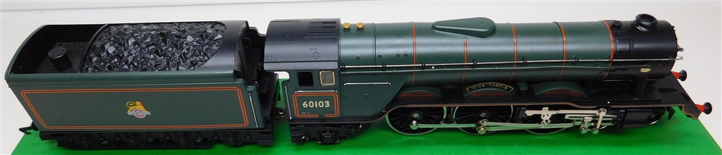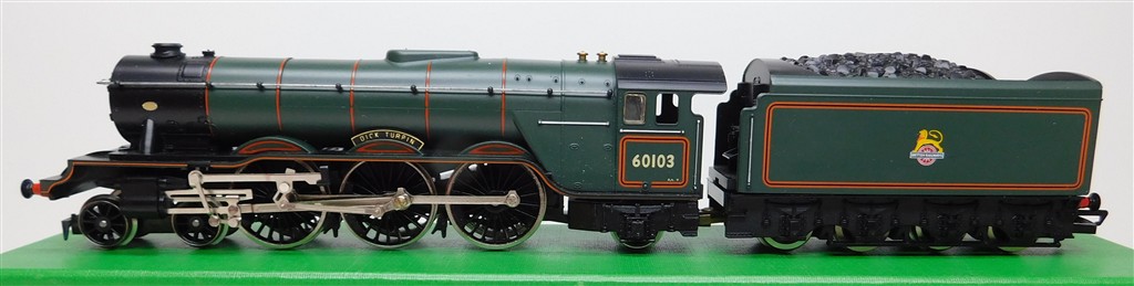 A Hornby renamed tender drive A3 steam loco number "Dick Turpin", incorrect 60103 number, BR green livery, good runner, in good condition, supplied in the tatty original box, needs either renaming or renumbering correctly.