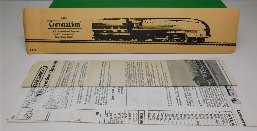 A Hornby R685 tender drive LMS Coronation steam loco number 6220, blue livery, good runner, in good clean condition, supplied in the tatty original box.