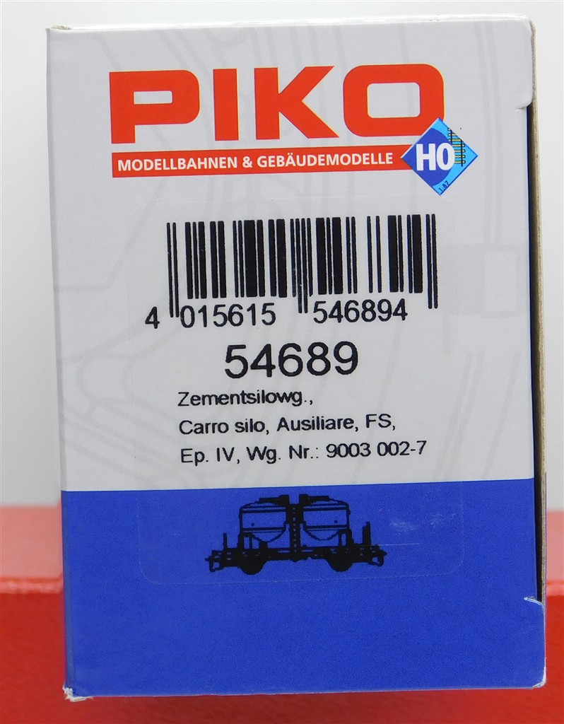 A Piko 54689 Italian FS cement silo wagon type Uckk number 23 83 900 3 002-7, NEM pocket couplings with close coupling mechanisms, in very good condition, supplied in the original box, new price is EUR41.99 from Piko
