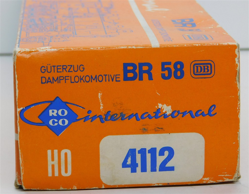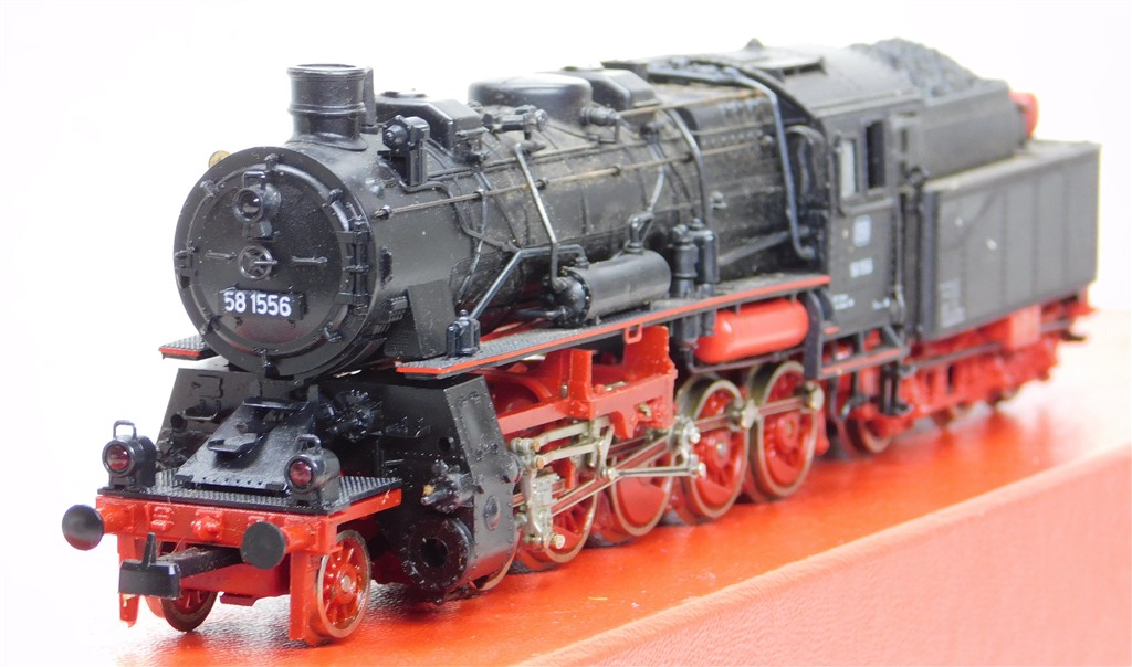 A Roco 4112 German DB class 58 steam loco number 58 1556, good if noisy runner with directional head lights, missing cylinder end rods otherwise in good used condition, needs a clean, supplied in the original box