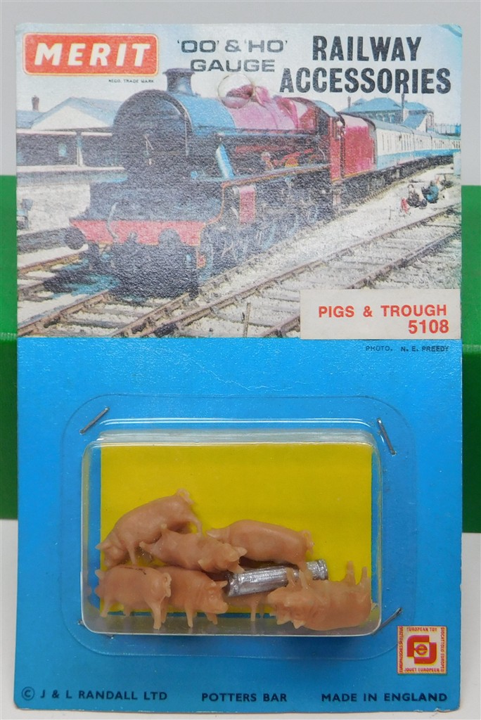 A Merit 5108 blister design pack of pigs and trough, appears unopened.