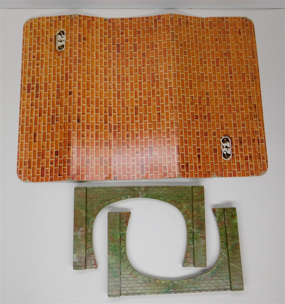 A Hornby pair of plastic tunnel mouths with brick effect card cover, these were supplied in train sets in the 1970s, in good unused condition.