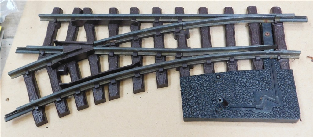 G scale: LGB G scale 1st radius left hand point, jammed mechanism, as removed from a garden layout