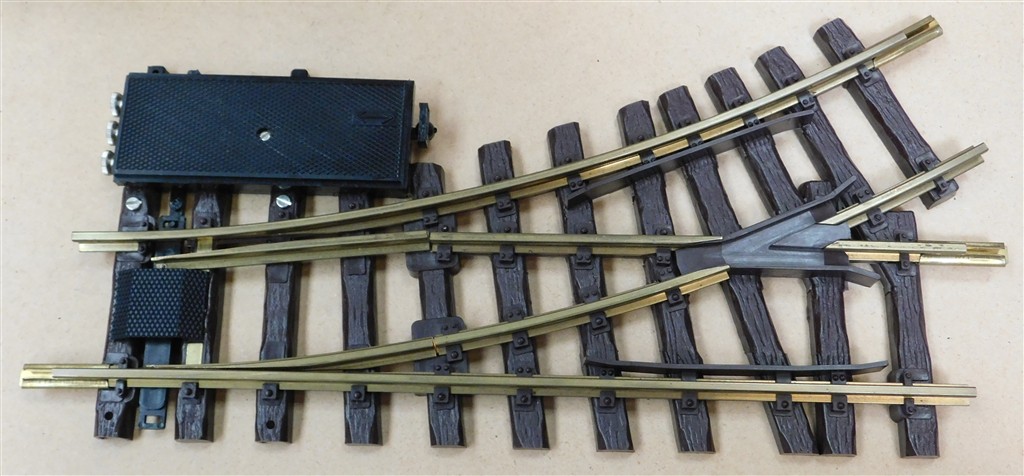 An LGB 1215 electrically operated left hand point, in good condition, supplied in the original box, tested and works well