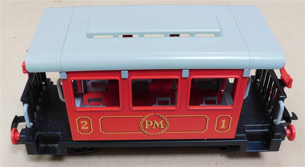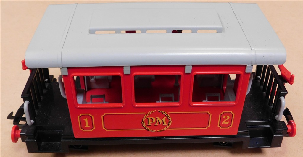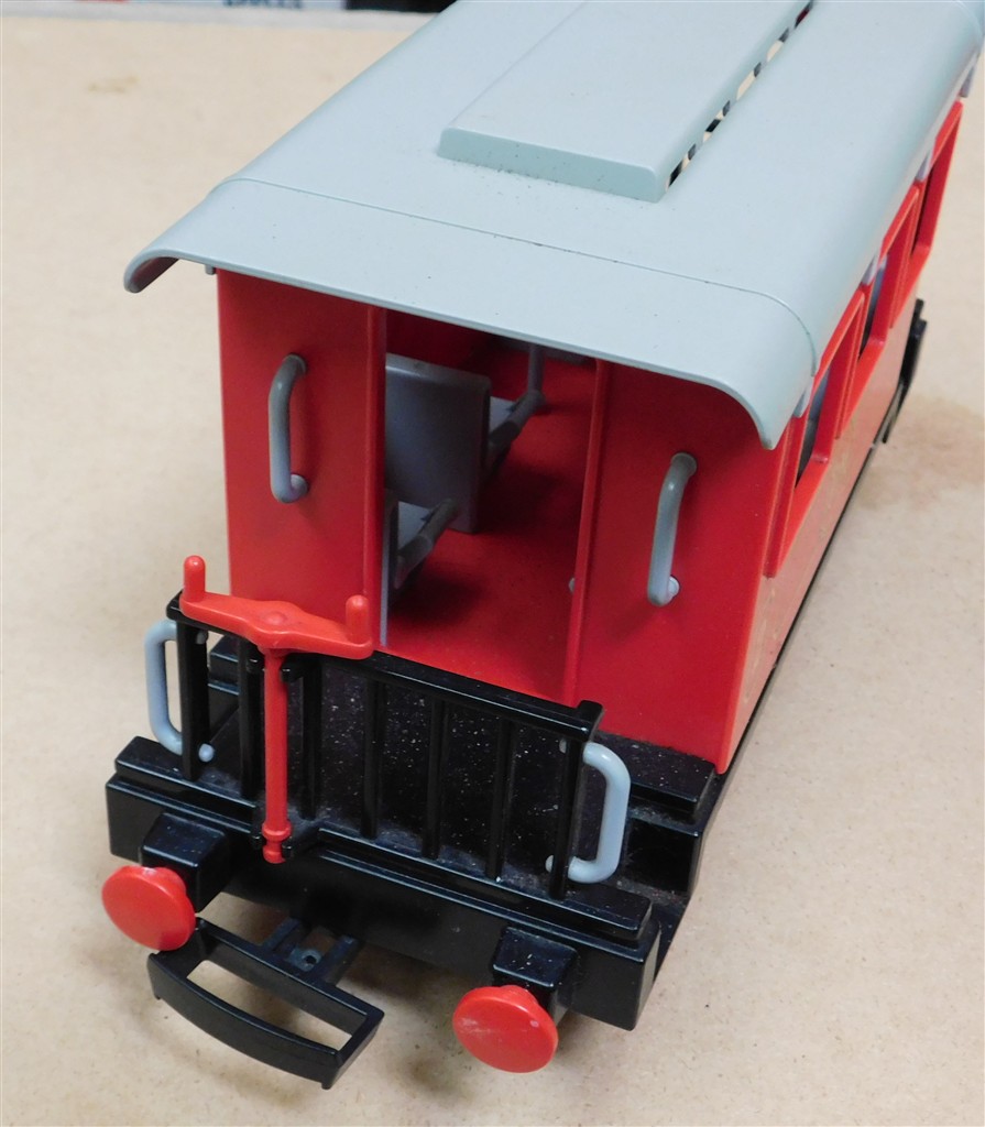 A Playmobil G scale red coach, wheels need a good clean otherwise in good condition, no original box