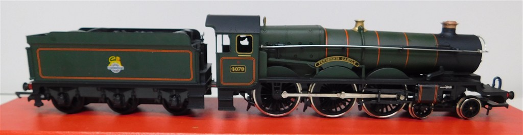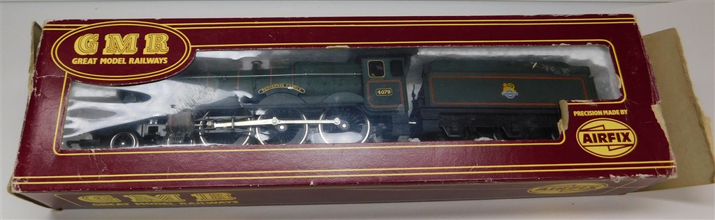 An Airfix tender drive BR ex GWR Pendennis Castle, wobbly runner that often derails, cause needs investigating and fixing, needs a thorough electrical clean and careful lubrication as it squeaks, in good cosmetic condition but needs a clean, supplied in the tatty original box, sold as a project needing work