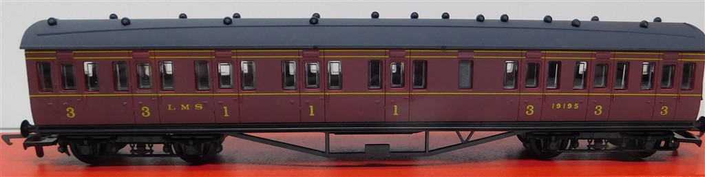 00 Coaches: Airfix (GMR) 54251-3 57 Foot Lavatory Non-Corridor Composite Coach LMS Maroon 19195