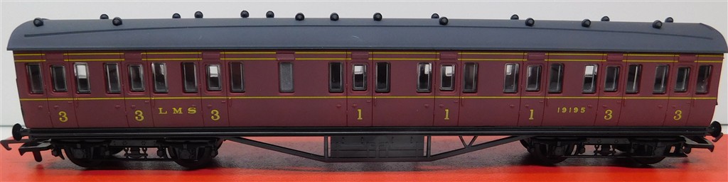 An Airfix (GMR) 54251-3 57 Foot Lavatory Non-Corridor Composite Coach LMS Maroon 19195, in good clean condition, supplied in the original box.