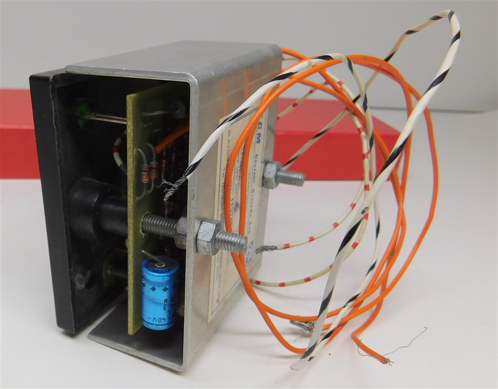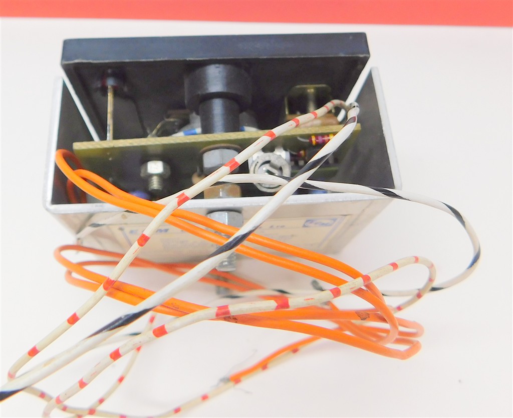 An ECM Compspeed panel mount surface controller, requires 16v AC input from a suitable mains transformer (not included) and installation into a panel, tested and working, no original packaging or instructions. The orange wires connect to the 16v AC supply, the white striped wires connect to the track.