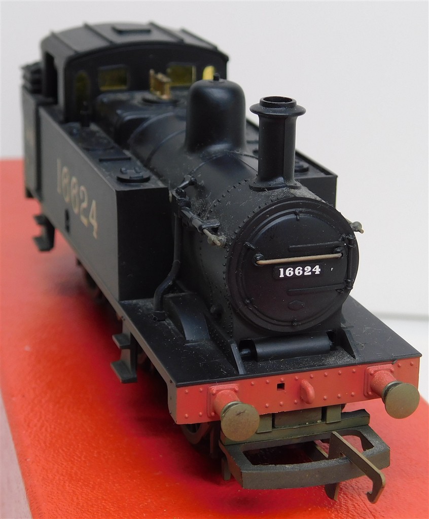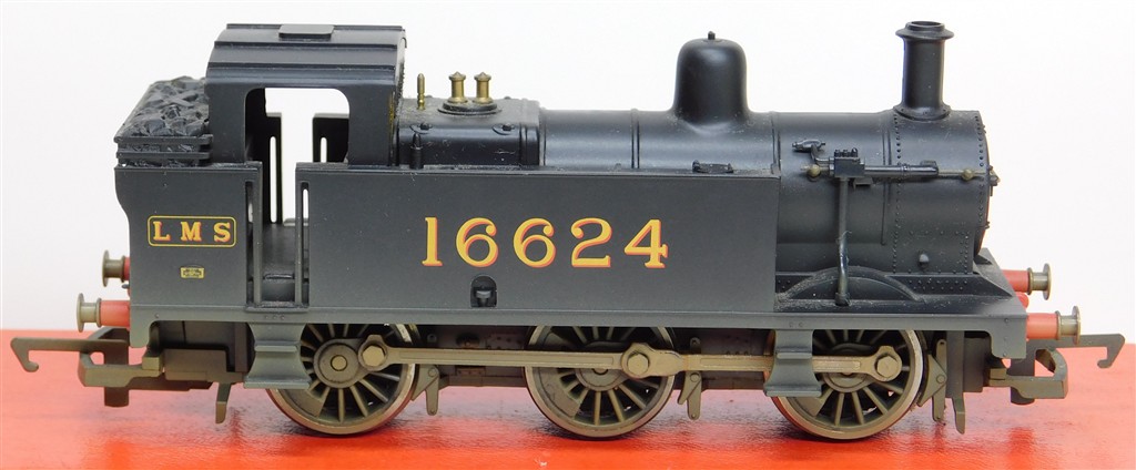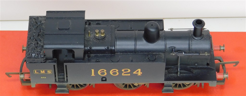 A Hornby R2469 LMS Jinty steam loco number 16624, good runner, loose bodyshell as the front lugs on the chassis are broken off otherwise in good condition, supplied in the original box