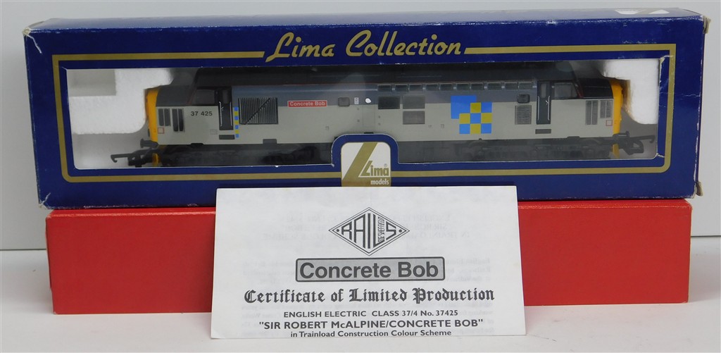 A Lima 204897A7 Trainload livery class 37 diesel loco 37 425 Concrete Bob, good runner, in very good condition, supplied in the original box with certificate