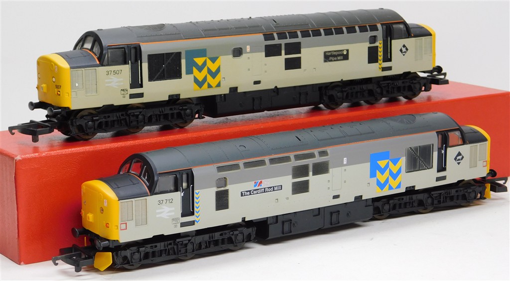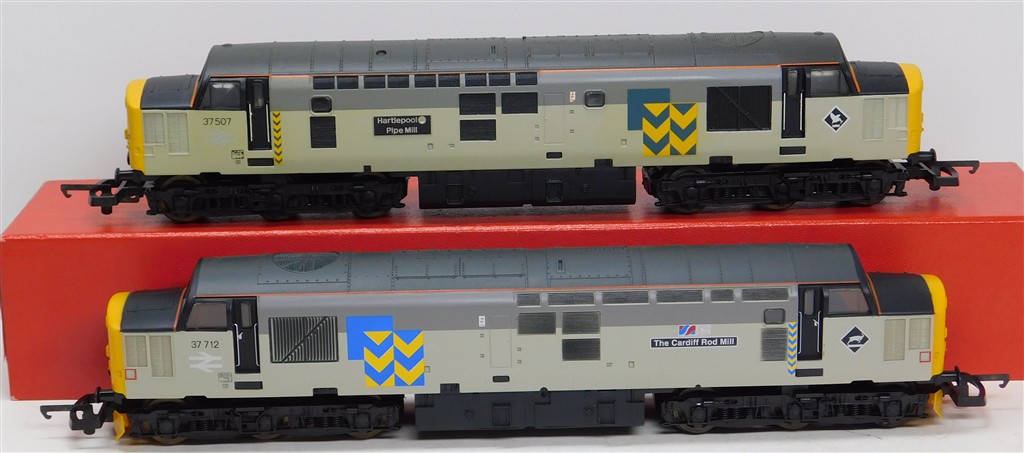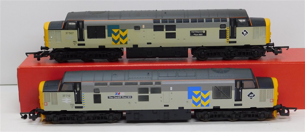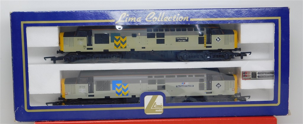 00 Diesels & Electrics: Lima L204922 Pair of Trainload livery class 37 diesel locos 37 512 Cardiff Rod Mill and 37 507 Hartlepool Pipe Mill (repainted), good runners
