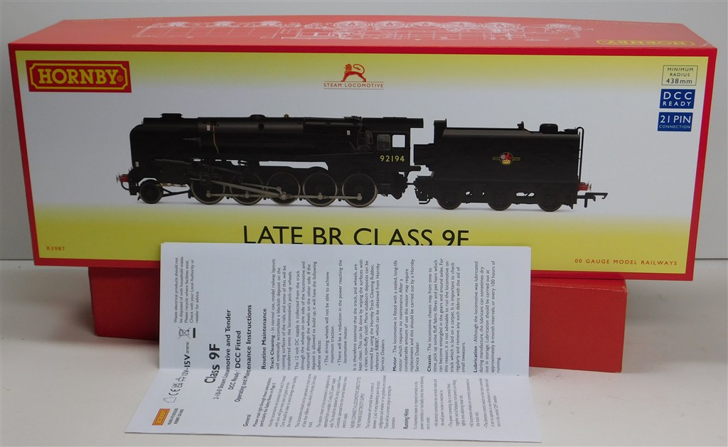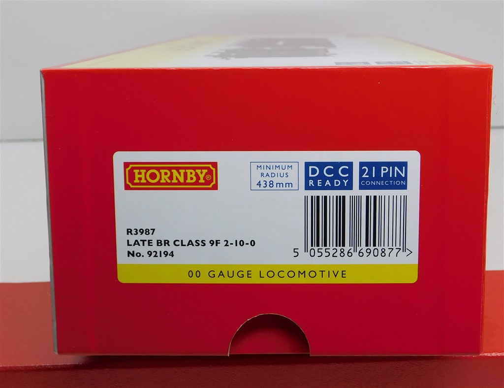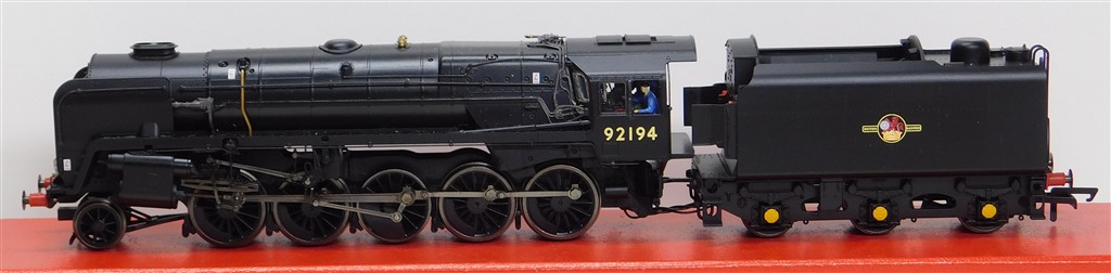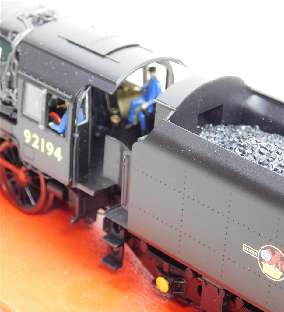 A Hornby R3987 BR 9F steam loco number 92194, good runner, with small added details including dummy lamps with a few glue spots otherwise in very good condition, supplied in the original box