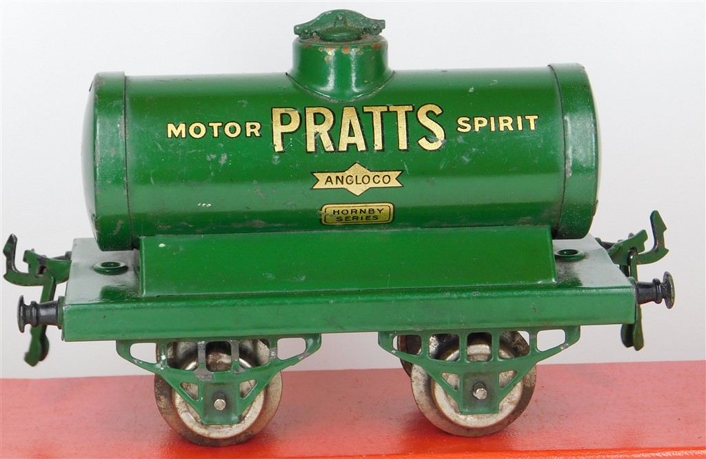 British 0 Gauge : Hornby O gauge Pratts Motor Spirit tank wagon, type 2 chassis