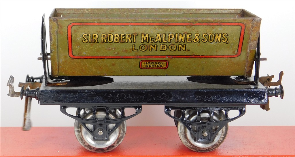 British 0 Gauge : Hornby O gauge McAlpine side tipper wagon, grey, type 2 chassis