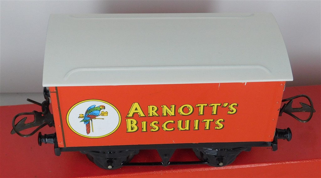 British 0 Gauge : Repainted Hornby O gauge Arnott's Biscuits van