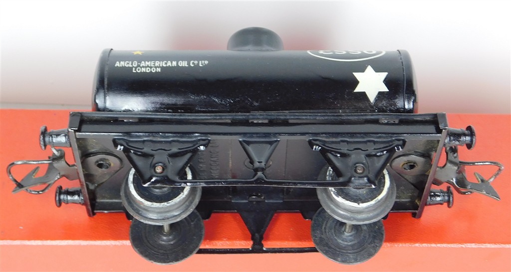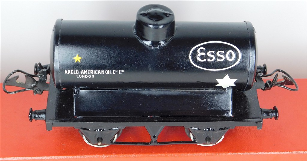 British 0 Gauge : Repainted Hornby O gauge Esso Anglo-American Oil tank wagon, black