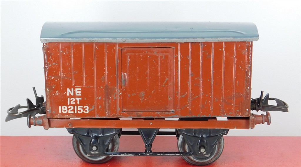 A playworn Hornby O gauge NE van 182153, type 3 chassis, no original box