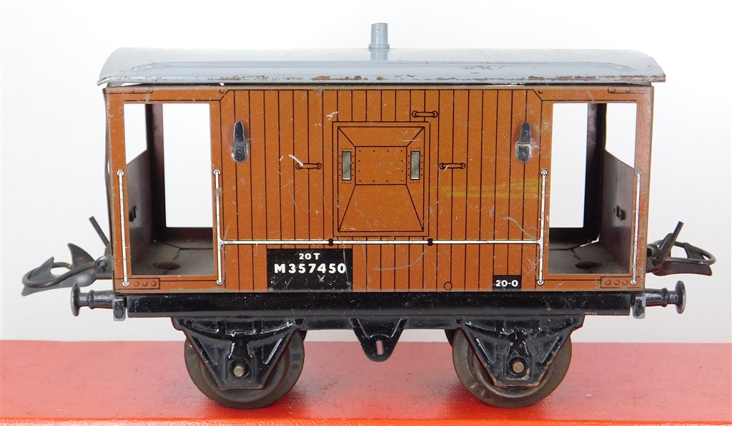 A playworn Hornby O gauge No.50 BR brake van M357450, no original box