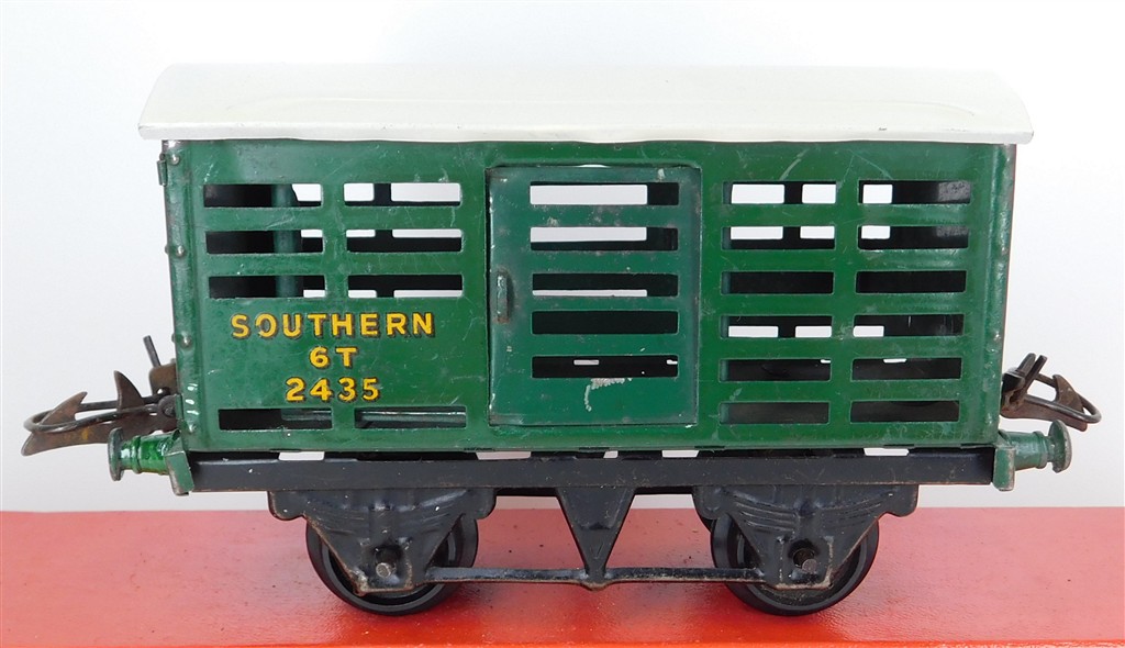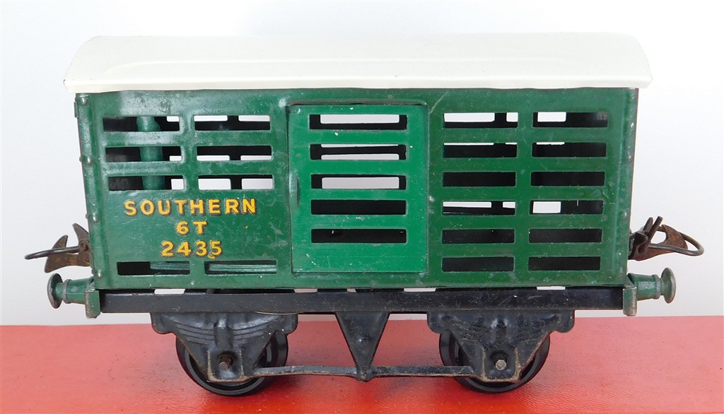 British 0 Gauge : Hornby O gauge Southern green milk traffic van, type 3 chassis, black solebar