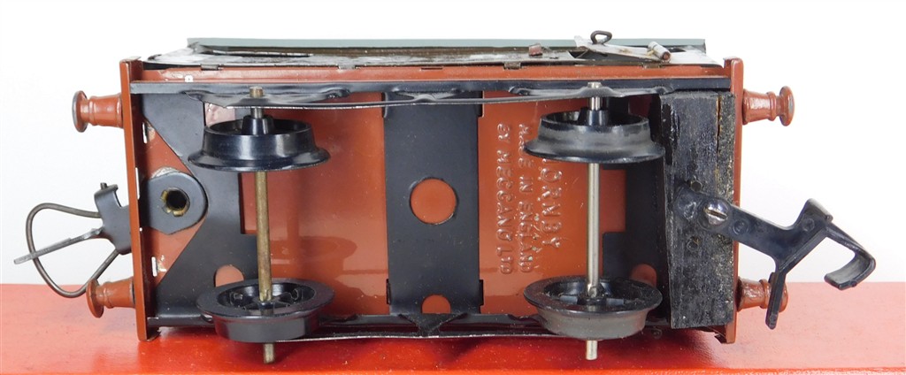 British 0 Gauge : Repainted Hornby O gauge SR brake van unnumbered, Tri-ang Big-Big coupling one end