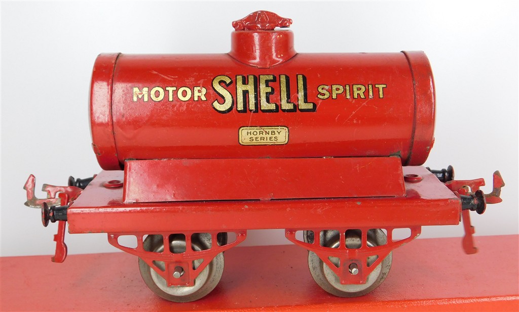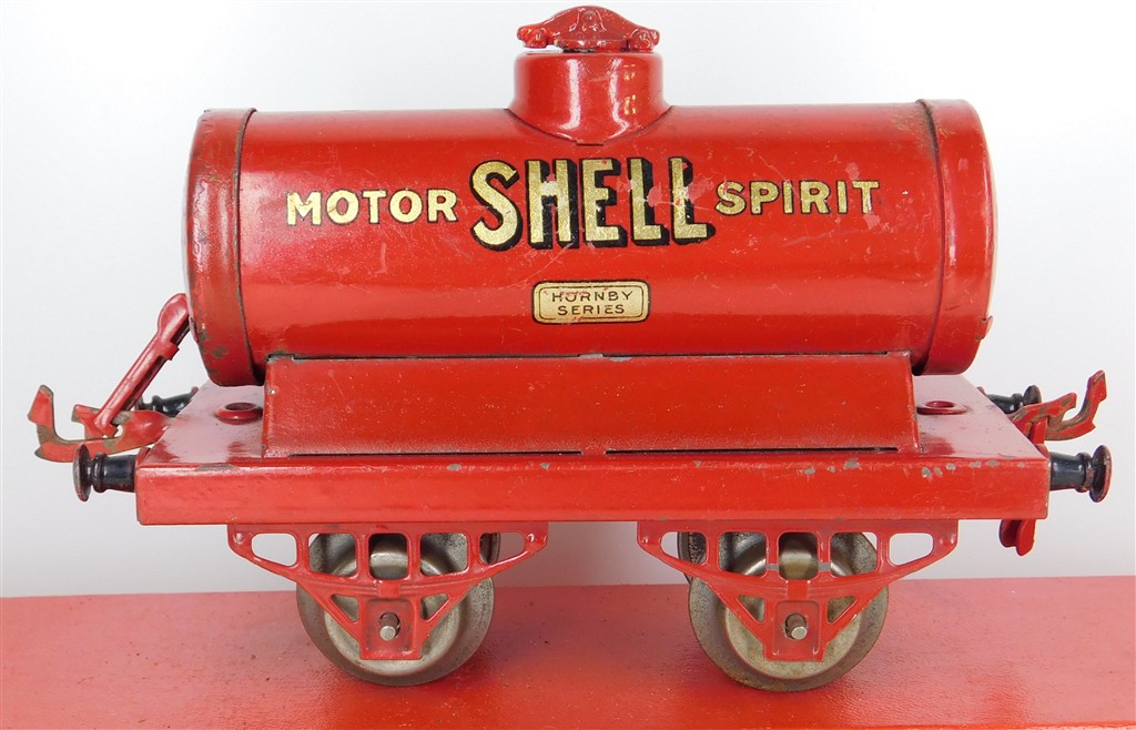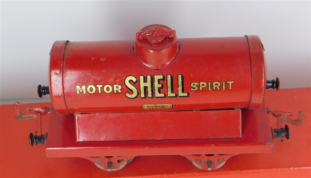 A Hornby O gauge Shell Motor Spirit tank wagon, type 2 chassis, in fair condition, no original box