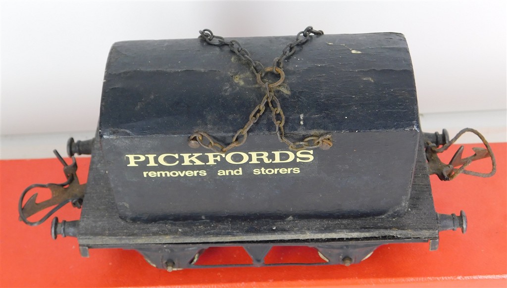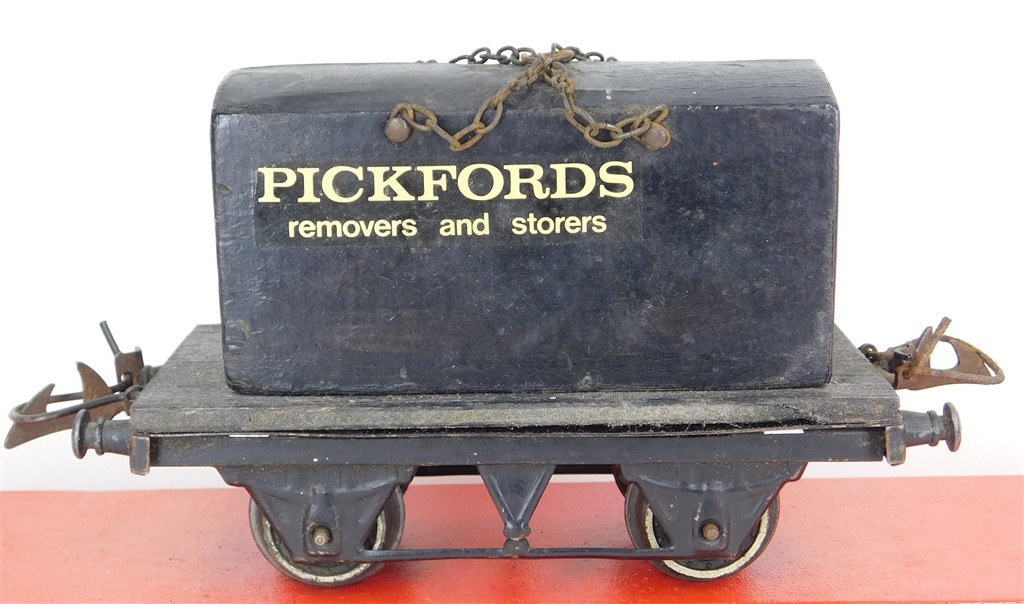 British 0 Gauge : Homemade Pickfords container wagon on Hornby O gauge chassis