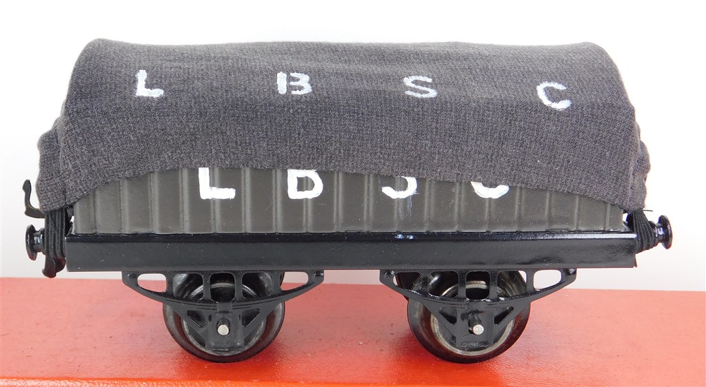 British 0 Gauge : Repainted Hornby O gauge LBSC open wagon with LBSC tarpaulin, type 2 chassis