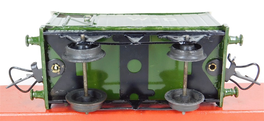 British 0 Gauge : Repainted Hornby O gauge WD (War Department) brake van, type 3 chassis