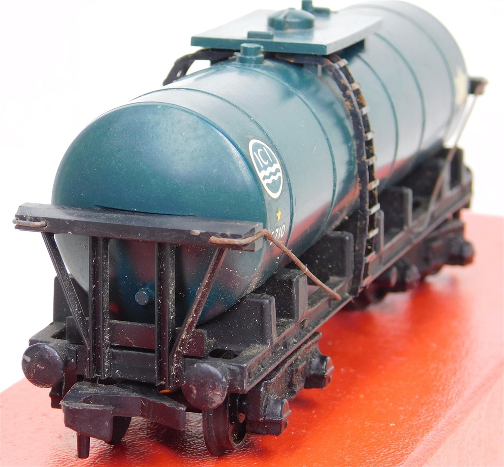 A Hornby Dublo ICI bogie tank wagon with plate bogies, in good condition, no original box